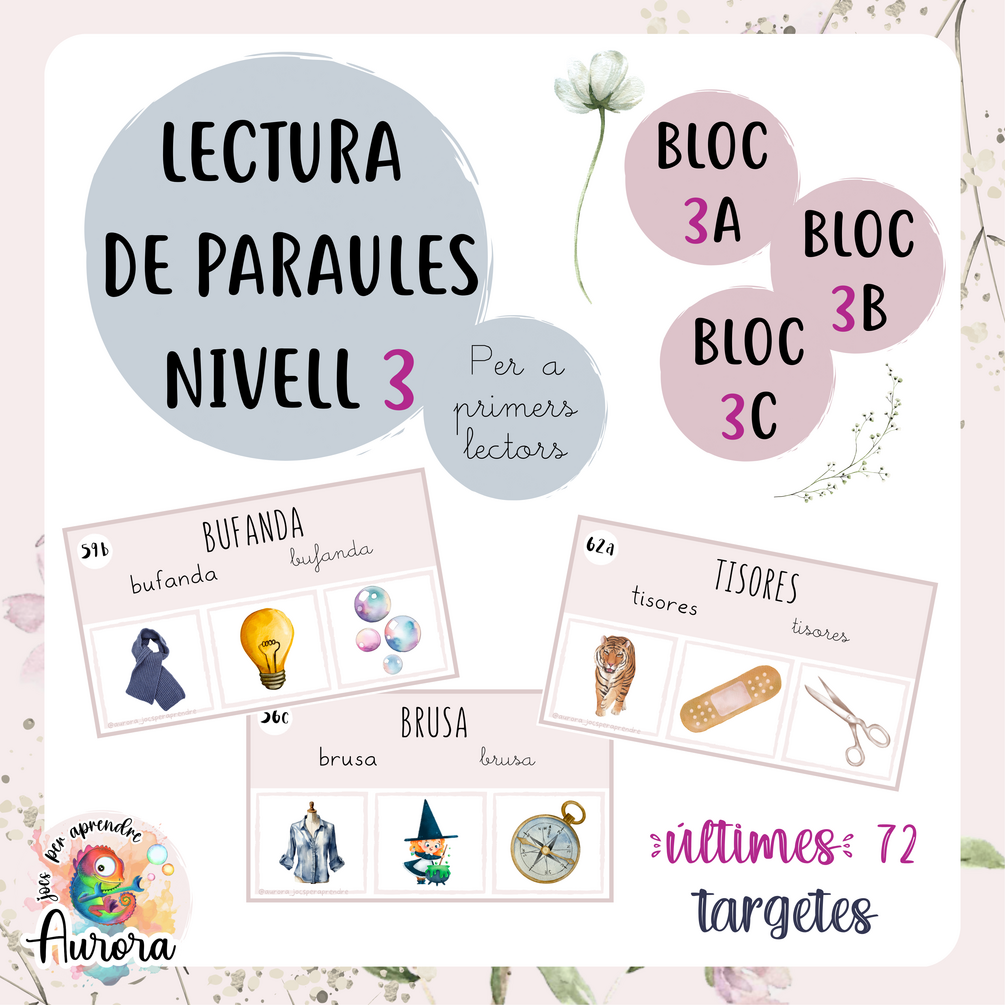 Aquest recurs de lectura de paraules – Nivell 3 completa el recurs que permet a l'infant avançar en el procés de la lectura d'una manera progressiva.