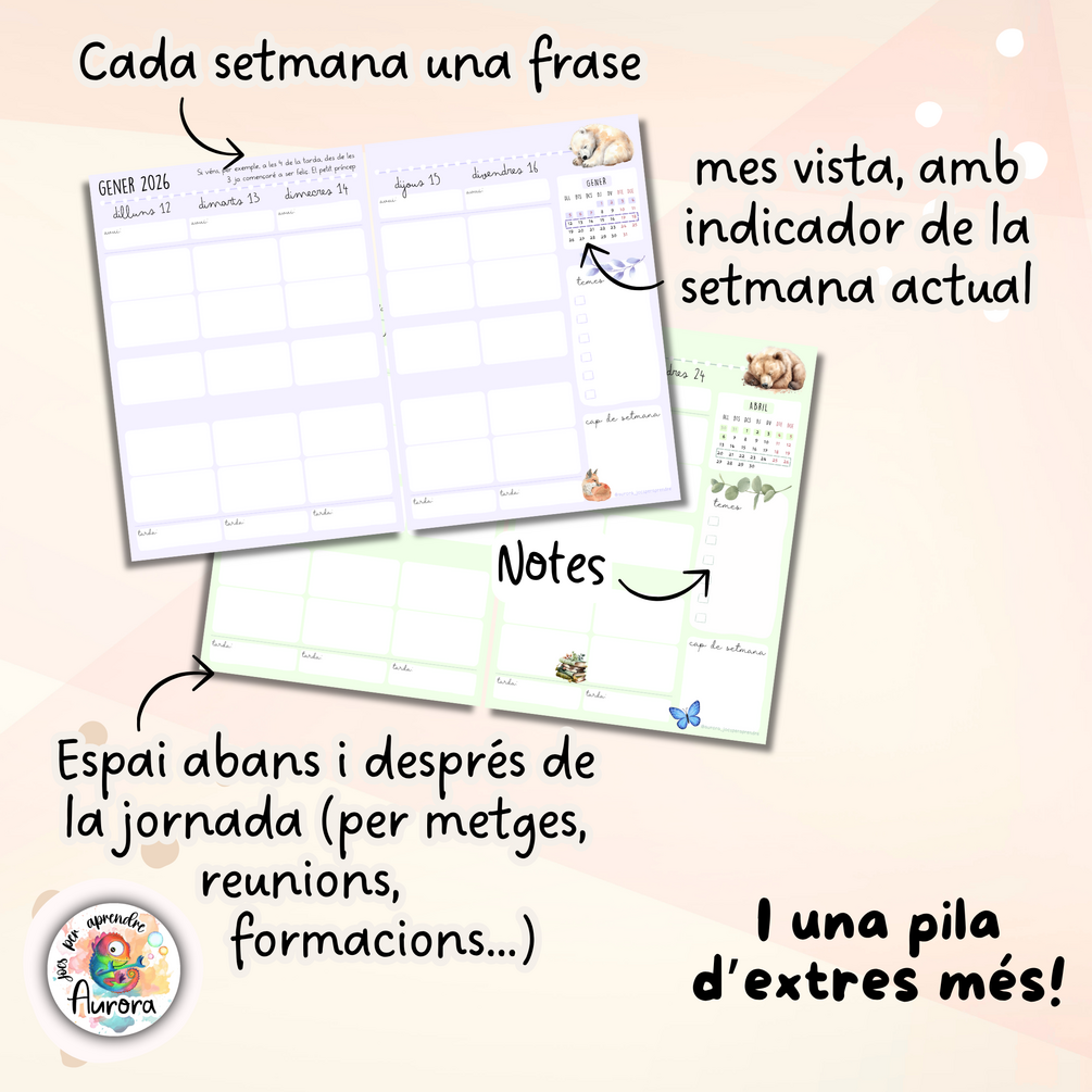 Quadern docent per al curs 2025-26, completament personalitzat, fet amb molt d'amor i cura pel detall, per tenir-ho tot organitzat, accessible i bonic. Inclou: